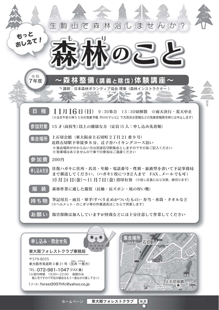 ・服装は、長袖・長ズボン・底の厚い靴等の森林整備作業に適した服装でおいで下さい。