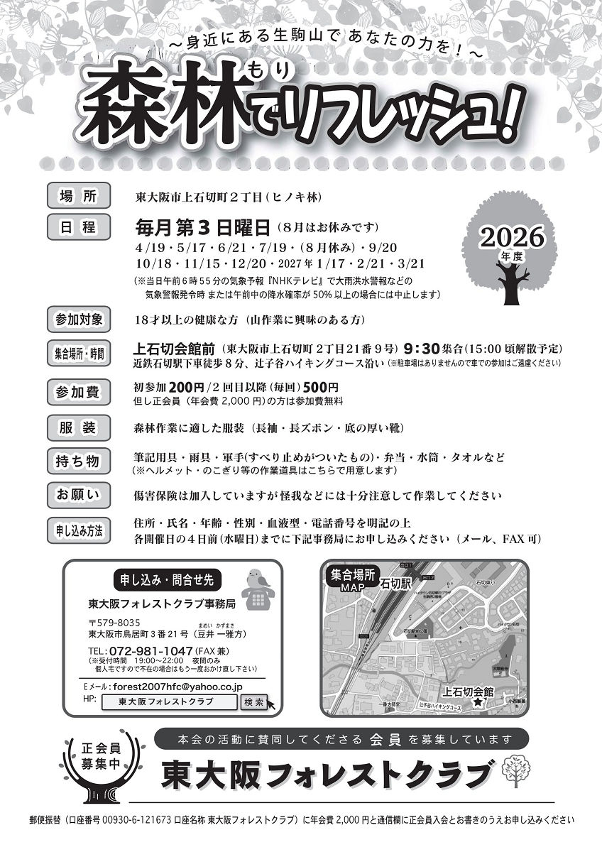 2026年度森林整備月例活動スケジュール(活動会員募集)